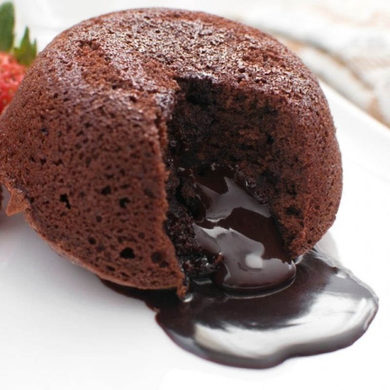 - Bake at 195°C for 15 minutes or based on desired softness and runniness at cake center.